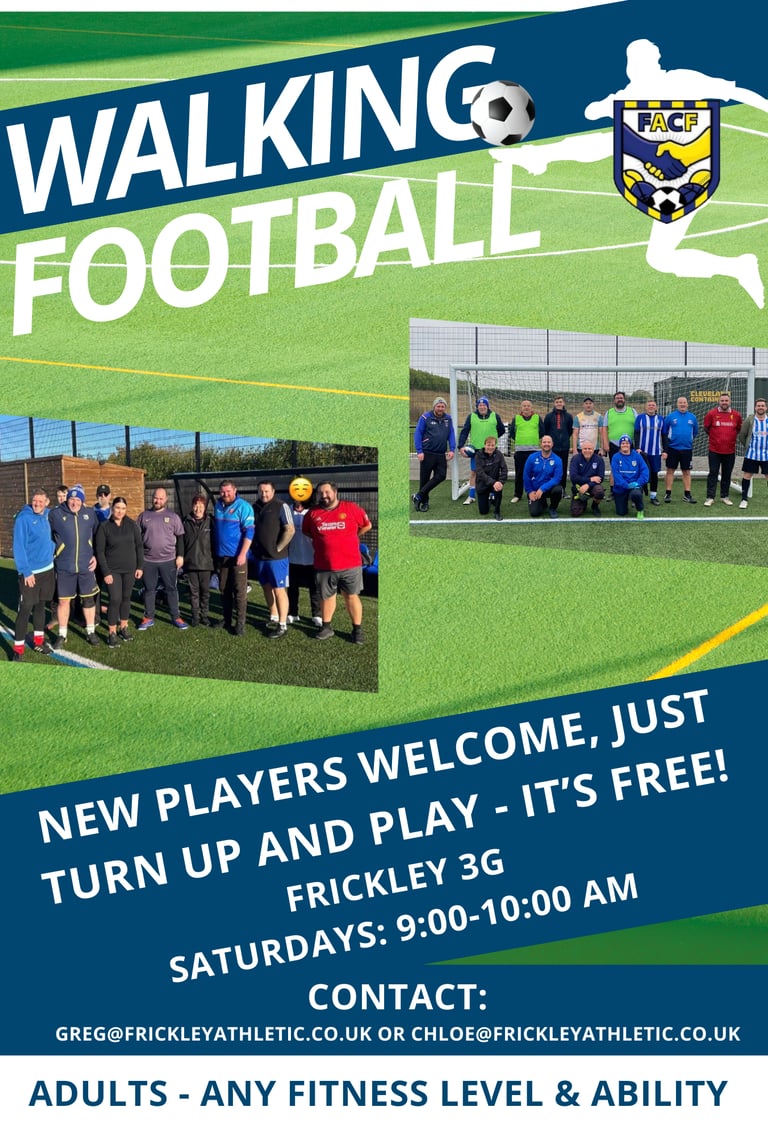greg@frickleyathletic.co.uk or 07476 204901